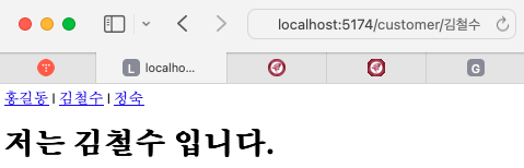 <Route path="/customer/:name" element={<Info />} /> { /** ์๋ฐ์ pathvariable ๊ณผ ๋น์ทํ ๋๋. */}